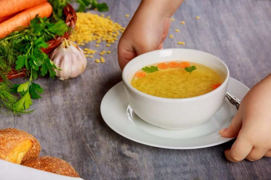 bulion | swojski makaron | mięso | marchewka | natka