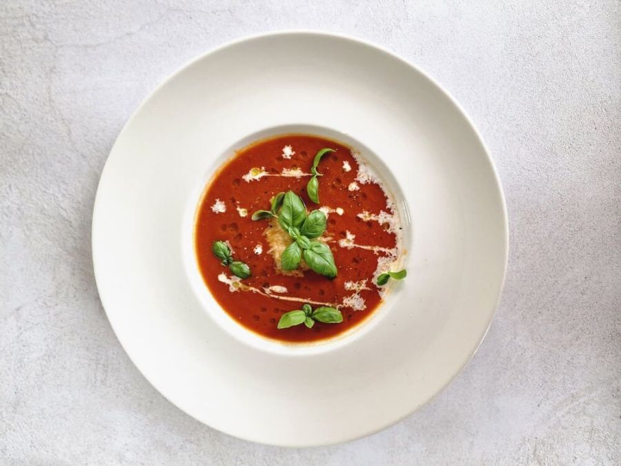 krem z pomidorów mutti | śmietana | włoski ser | oliwa czosnkowa | bazylia