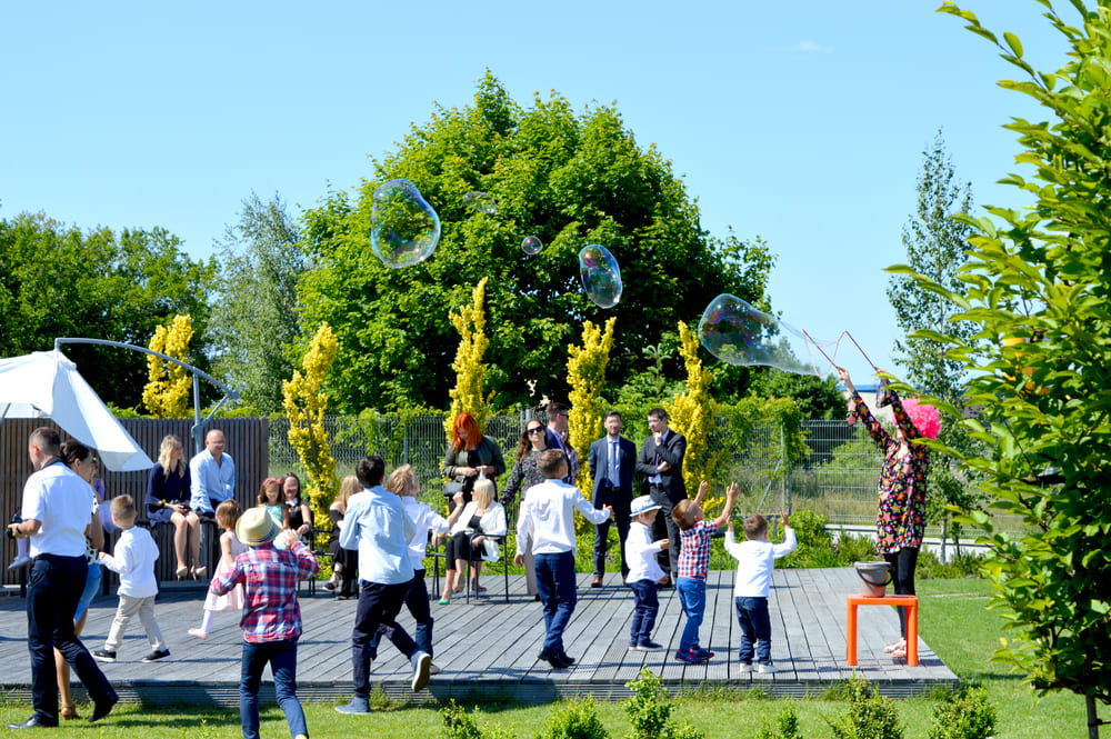 Wiemy, czego możesz oczekiwać po tego typu wydarzeniu. Sami posiadamy dzieci i wiemy, że na pewno pomocny będzie osobny pokój do Waszej dyspozycji przy Sali bankietowej, w którym znajdziecie przewijak i miejsce do nakarmienia dzieci. Potrzebujecie podgrzać posiłek? Nasza obsługa na pewno pomoże.